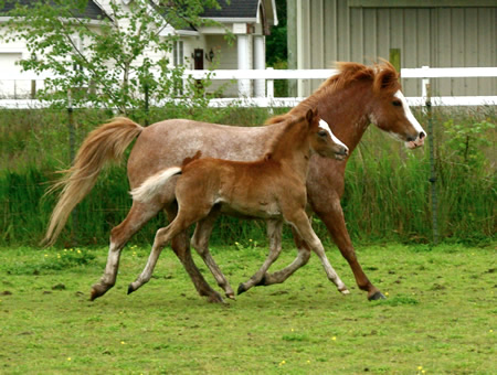 Lochinvar Debonair is one of those colts that you just can't take your eyes off of because every move, every angle, seems to be a pose...a "look at me", red carpet posture! He matches those good looks with stunning athleticism, effortlessly changing leads and moving off his hocks with powerful propulsion and reach. This fellow is big and substantial without losing an ounce of elegance or type. The son of champions, Debonair possesses the same qualities that took his parents to the upper tier of ribbons. Both sire and dam are 12 hh and we expect him to finish that size too. He is very kind, friendly, respectful, and tries so hard to please. He accepted bathing, farrier, worming, and clipping in stride. We are very keen on this colt and eagerly wait to see how he matures. Congratulations to his new owners!