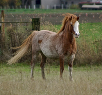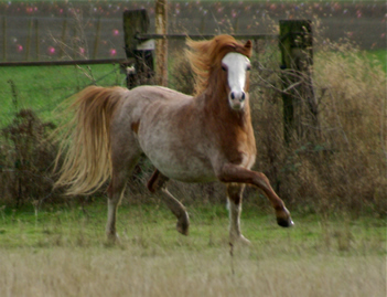 Devon is the first outside mare we have purchased in over a decade. We fell in love with her at first sight but she was not for sale. However, we let it be known that IF she ever was for sale we were definitely to be contacted. When circumstances changed and we were asked if we were still interested there was no hesitation in saying a resounding, "YES"!! Devon has been a wonderful asset to our herd. She is a substantial mare, a brilliant red, with tons of type, bone, beauty, and huge movement. What we love most about her is her willing, utterly kind, affectionate demeanor to humans and ponies alike. Every morning as the other ponies gallop out to the pastures, Devon stops to check in and get her scratches and love'n...once she's had some affection, then, and only then will she too head off to the day's grazing. Her foals have had this same kind, open approach to life. We are so lucky to have this sweetheart of a mare in our lives and in our program!              |