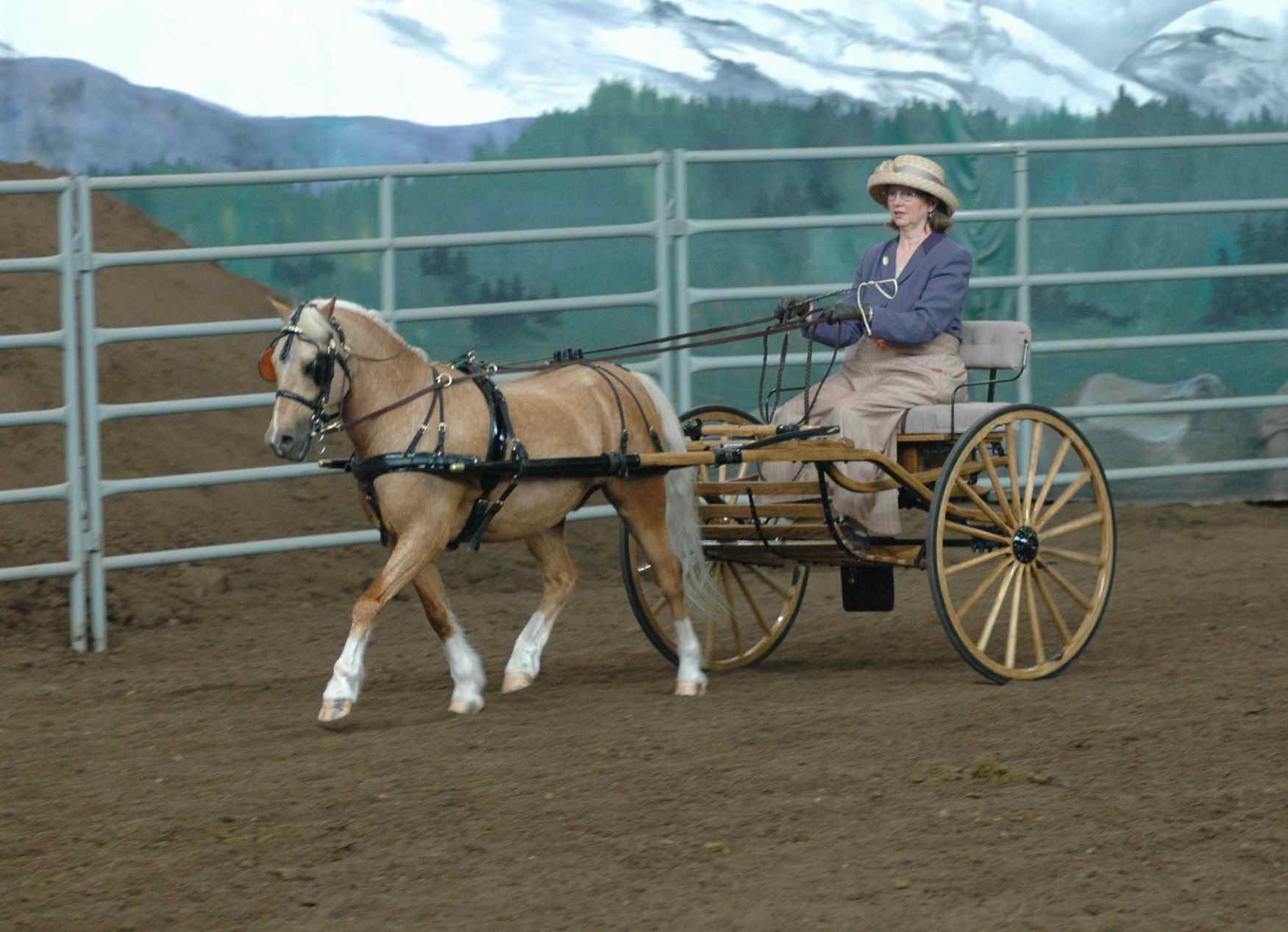Lochinvar Aladdin lived for years with Ken and Nellie where he was trained to drive and ride. Ken drove him and the grand-kids rode him. After their grand children grew up, Aladdin was sold. He languished for several years in a pasture before becoming the "new best friend" to young Emma. Aladdin carried Emma to many championships in Walk-Trot and a Reserve National Championship in 2008! Like so many geldings, Aladdin has been once again outgrown but still loved. He has gone on to a carefully selected home where a new generation of young riders need his sweet expertise and experience.  |